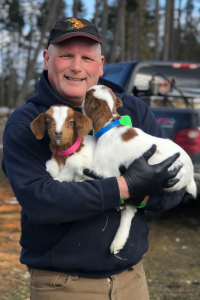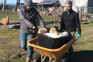 Amanda and Tom running the baby goat taxi.